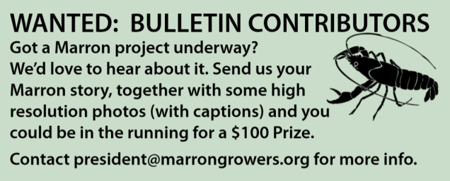 Full of interesting & informative articles, the Bulletin is an essential magazine for all marron growers. Below we publish a selection of past articles so that you can see the quality & scope of the information the Bulletin contains. If you would like to know more or join the Marron Growers Association of WA, please contact us or download & submit our Membership Application form